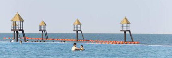 基地介紹:從海南三亞空運過來的海沙柔軟細白,走在上面非常舒服。燈塔眺望著遠方,沙灘草傘排開而坐。無邊泳池也是碧海銀沙的一大亮點,天人合一的壯觀美景讓人驚嘆。泳池邊上的躺椅設計也很獨特,躺在上面欣賞晚霞,便是愜意的放松,當陽光撒過海面,一種蓄意但包含力量之美或許讓你有種沖動,伸手摘下天邊的彩霞,去與這無盡的大海融為一體。海岸線延綿3.5公里,風情沙灘盡釋無邊浪漫,傾力打造的8.2平方公里的私屬內海,原版移植海南柔軟細白沙,早晀旭日出海。